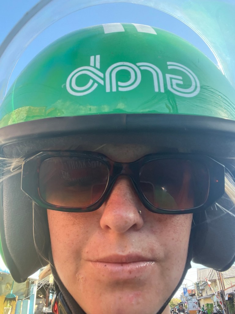 Today, I took a motorcycle taxi to the Nusa Dua peninsula. It’s about an hour on the back of the bike, which makes you pretty sore… not going to lie.