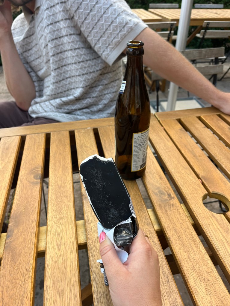 After our ferry back to the island, we walked to the castle’s tavern, where I decided to try a black licorice-coated ice cream. I’ve seen it in a few places and thought, why the hell not? I like black licorice, but this was DISGUSTING.